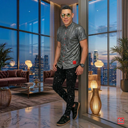 Camisa Manga Corta Metal Cuello Mao