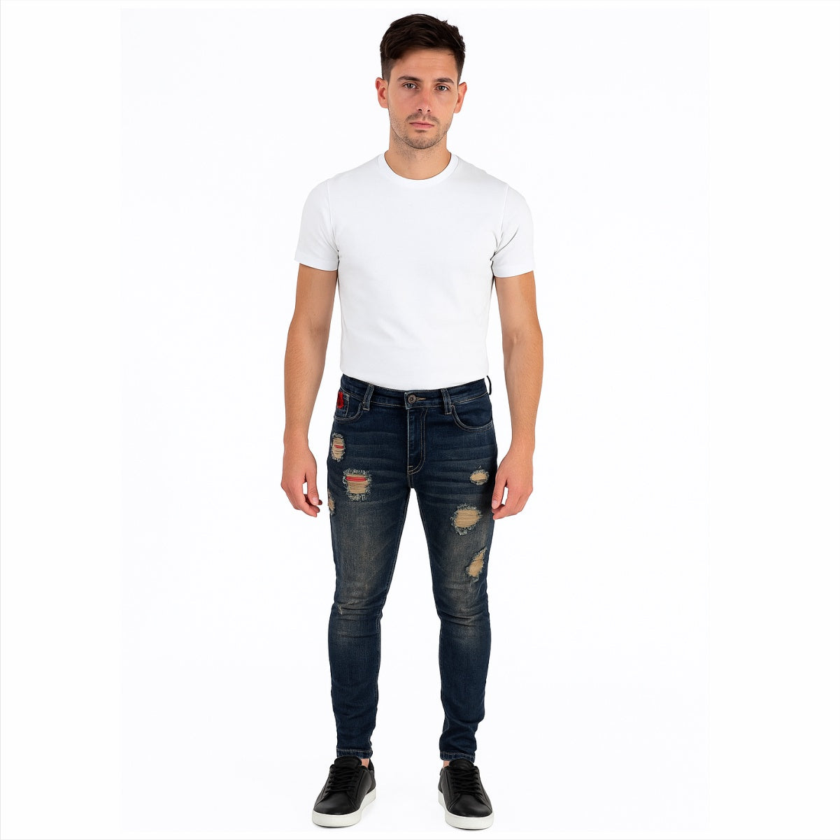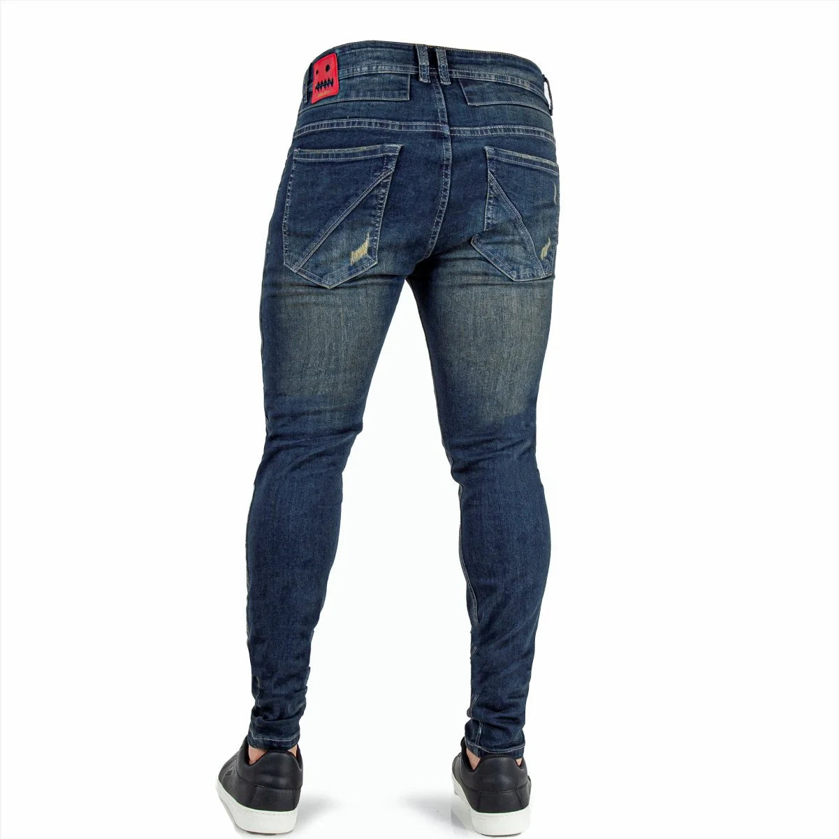 >Tela jean-denim elastica de alta calidad, composición algodón 98% + 2% spandex, lo cual hace que el jean estire y sea muy cómodo al usarlo.