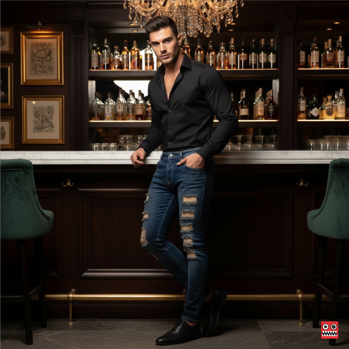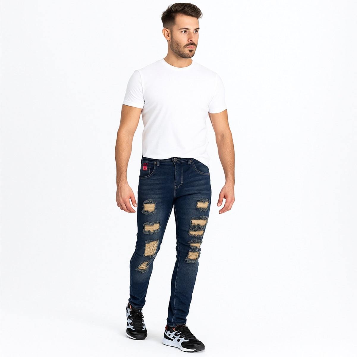 >Tela jean-denim elastica de alta calidad, composición algodón 98% + 2% spandex, lo cual hace que el jean estire y sea muy cómodo al usarlo.
