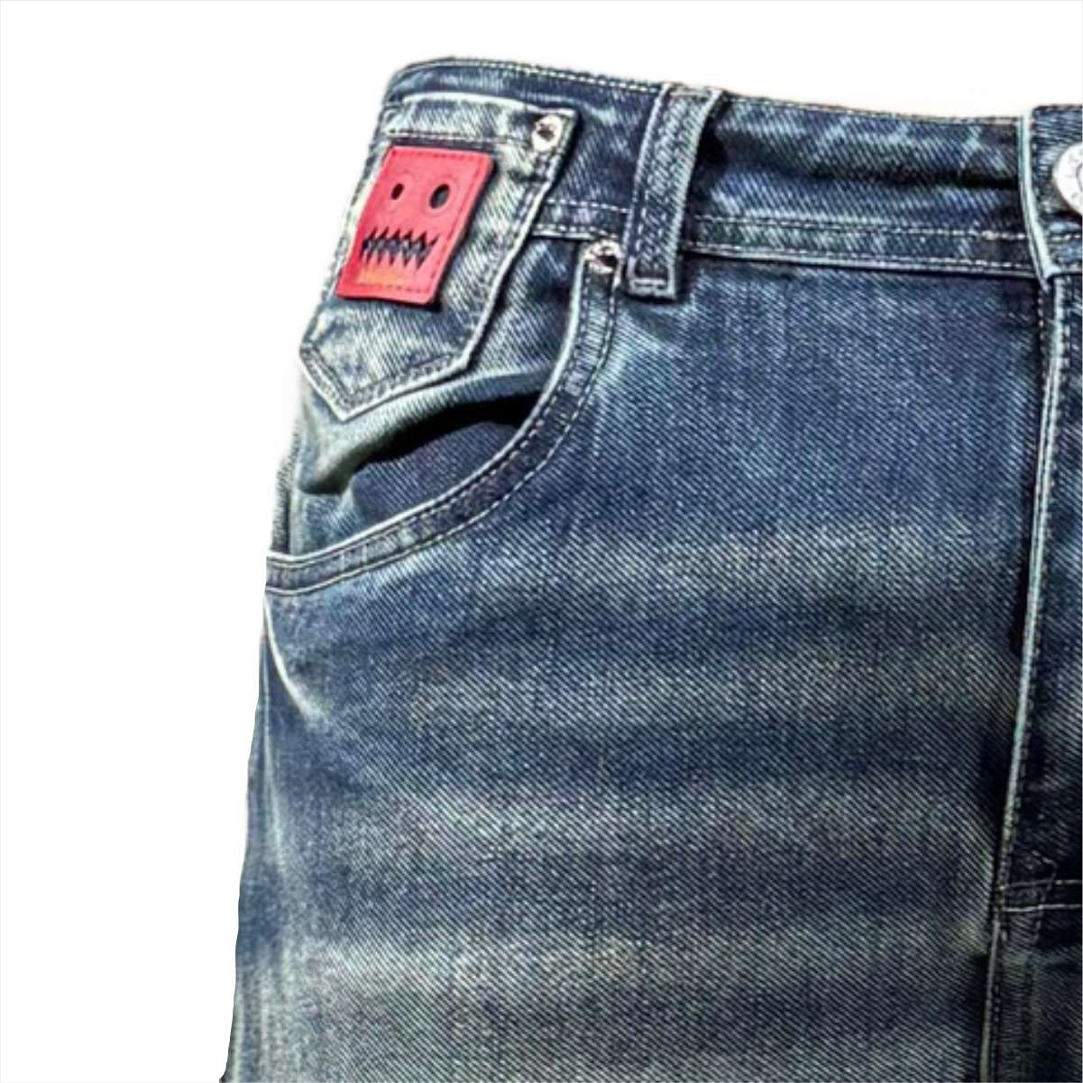 >Tela jean-denim elastica de alta calidad, composición algodón 98% + 2% spandex, lo cual hace que el jean estire y sea muy cómodo al usarlo.