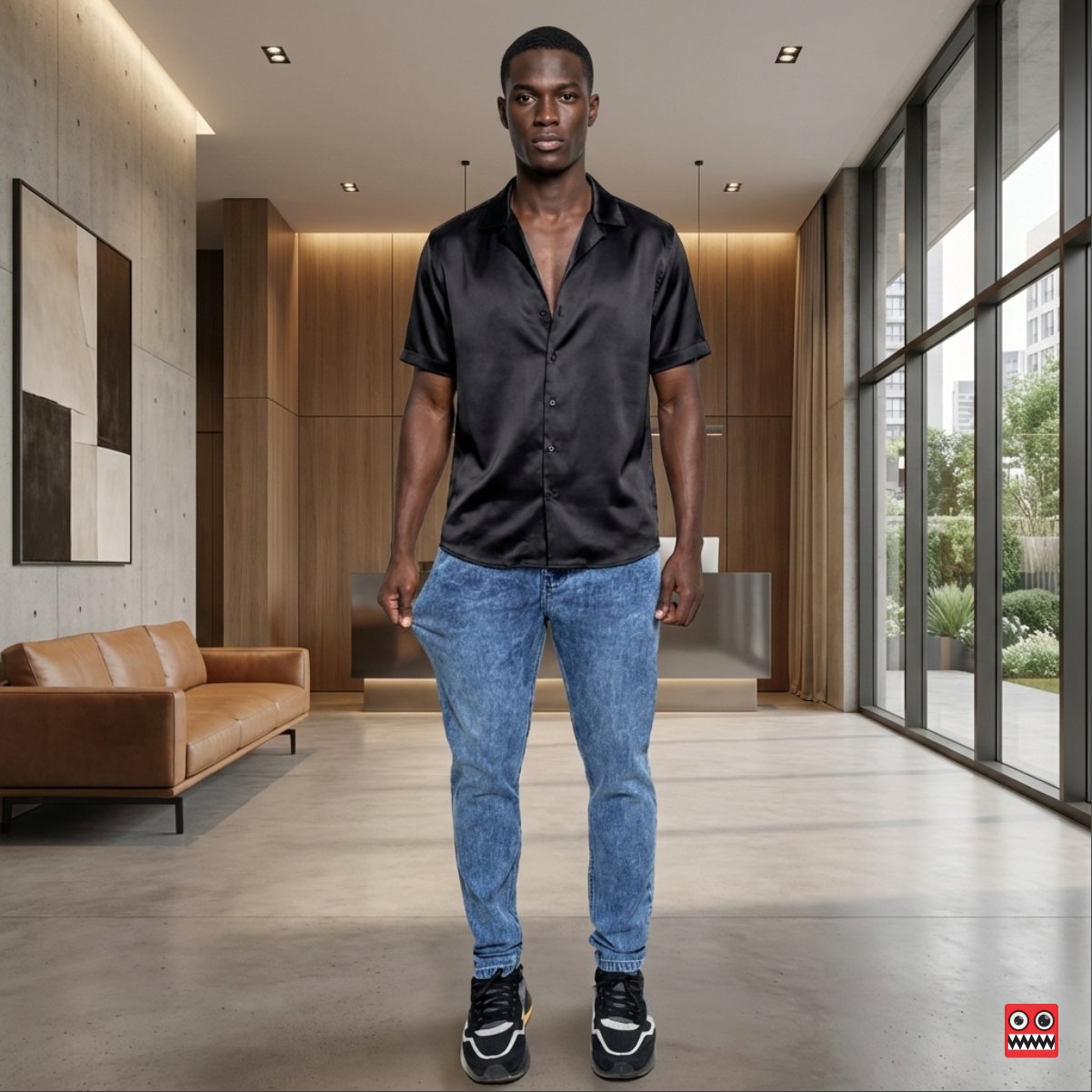 >Tela jean-denim elastica de alta calidad, composición algodón 98% + 2% spandex, lo cual hace que el jean estire y sea muy cómodo al usarlo.