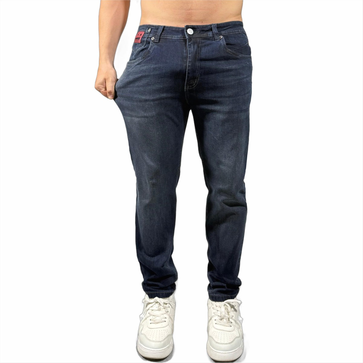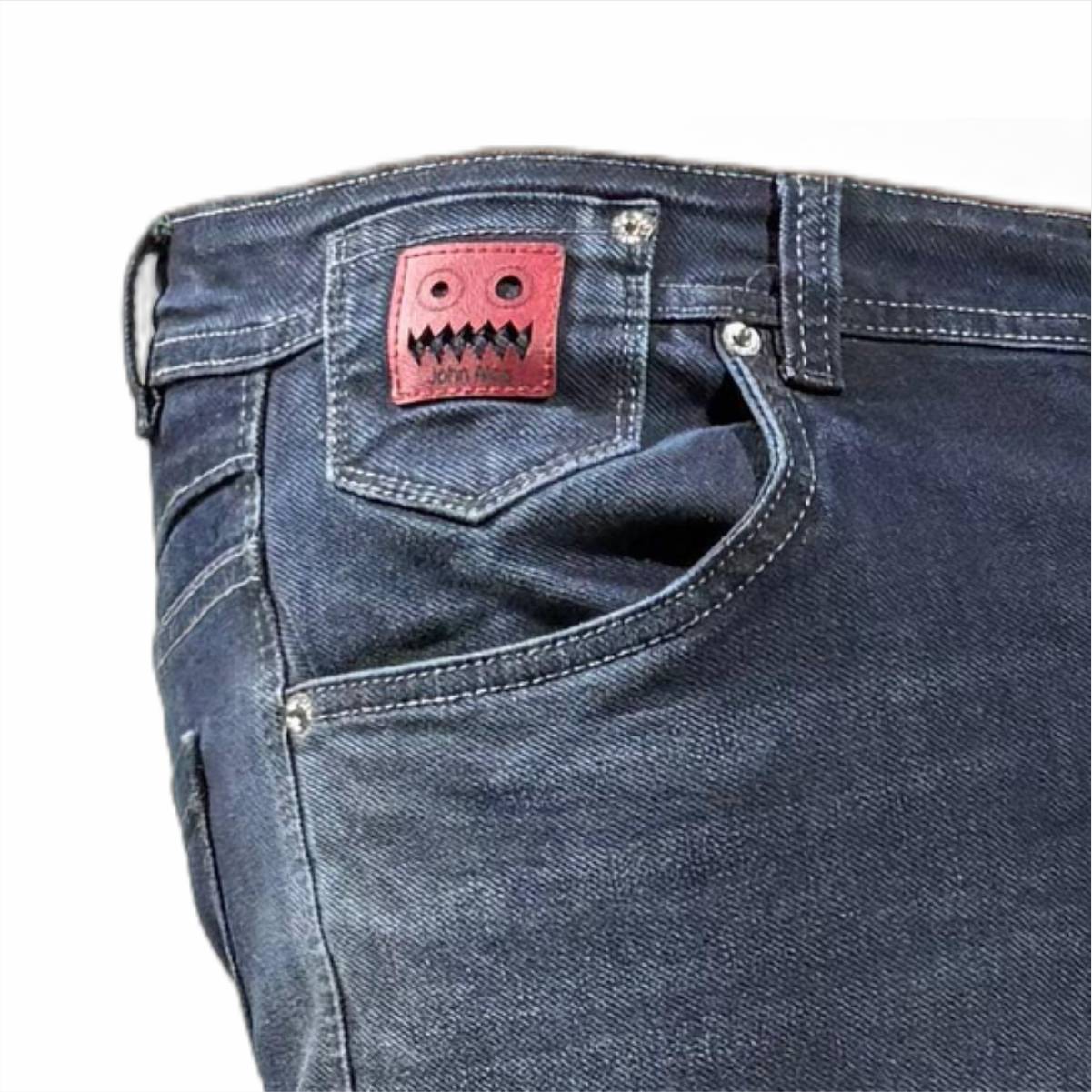 >Tela jean-denim elastica de alta calidad, composición algodón 98% + 2% spandex, lo cual hace que el jean estire y sea muy cómodo al usarlo.