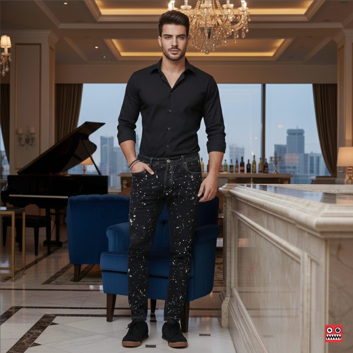 >Modelo de la imagen tiene de altura 175 cm, peso 70 kg, utiliza talla 32