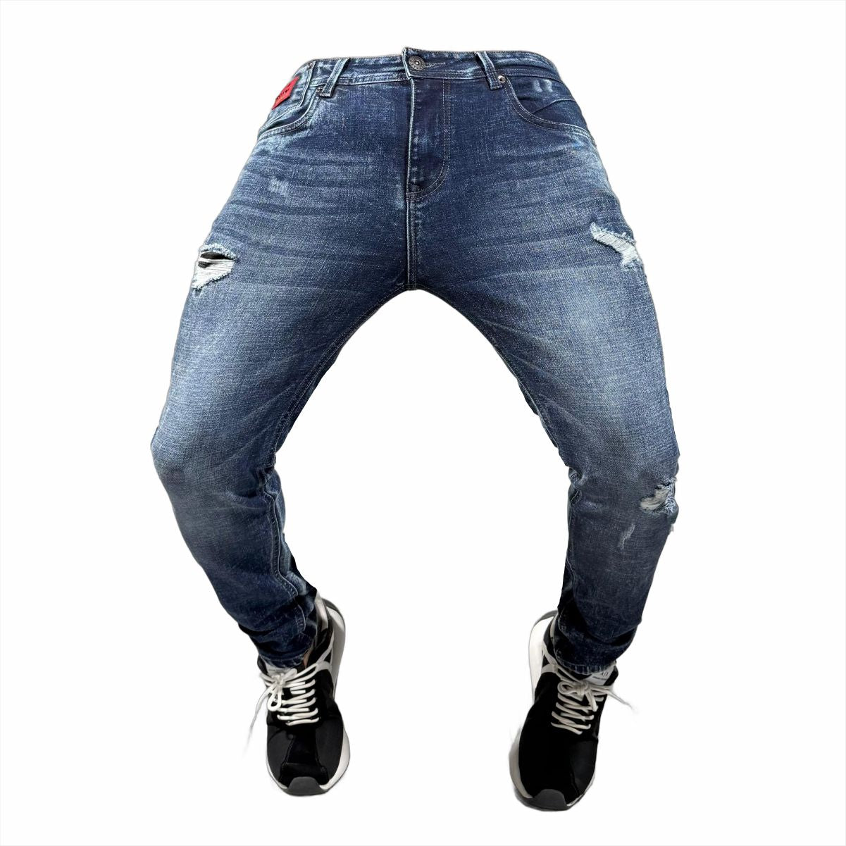 >Tela jean-denim elastica de alta calidad, composición algodón 98% + 2% spandex, lo cual hace que el jean estire y sea muy cómodo al usarlo.