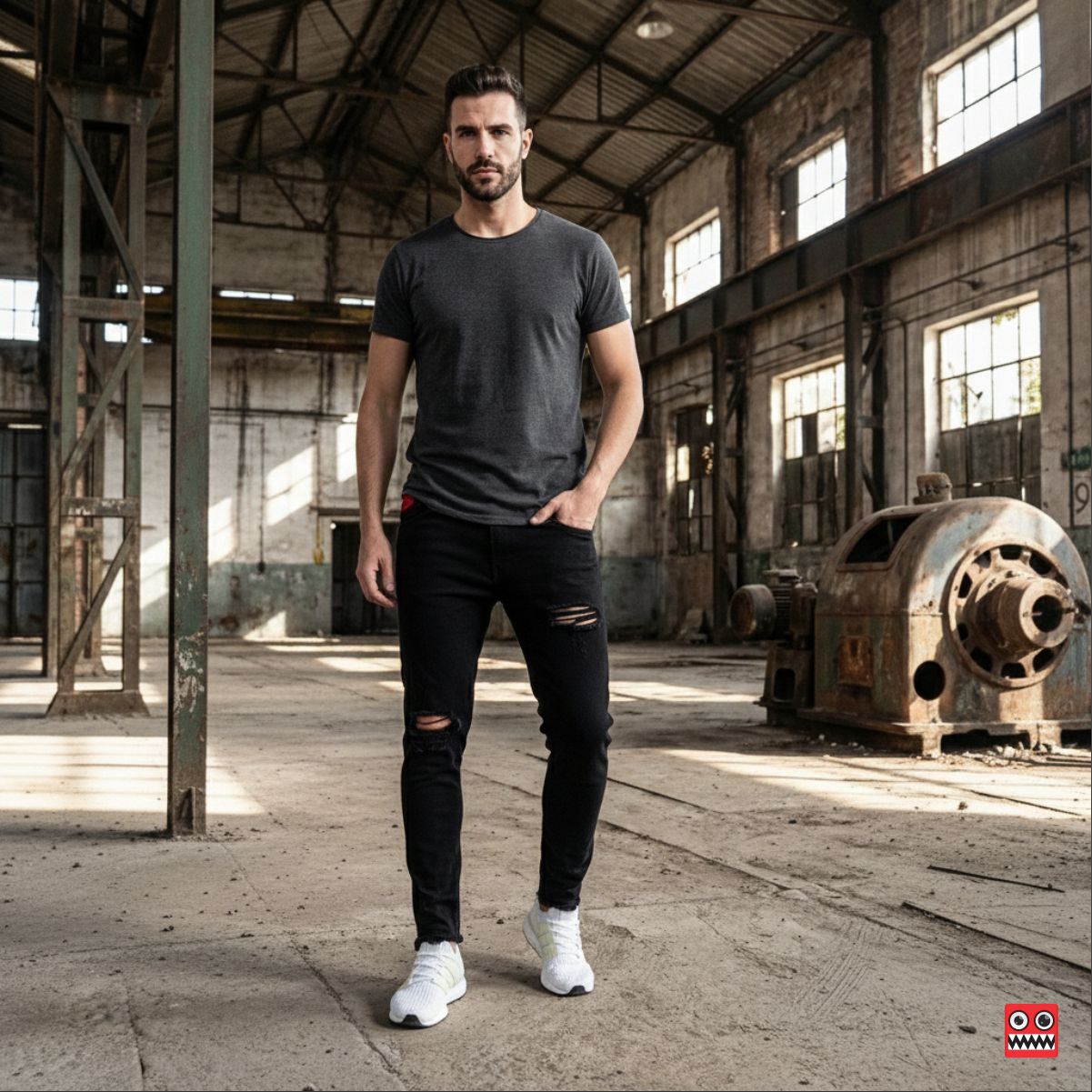 >Tela jean-denim elastica de alta calidad, composición algodón 98% + 2% spandex, lo cual hace que el jean estire y sea muy cómodo al usarlo.